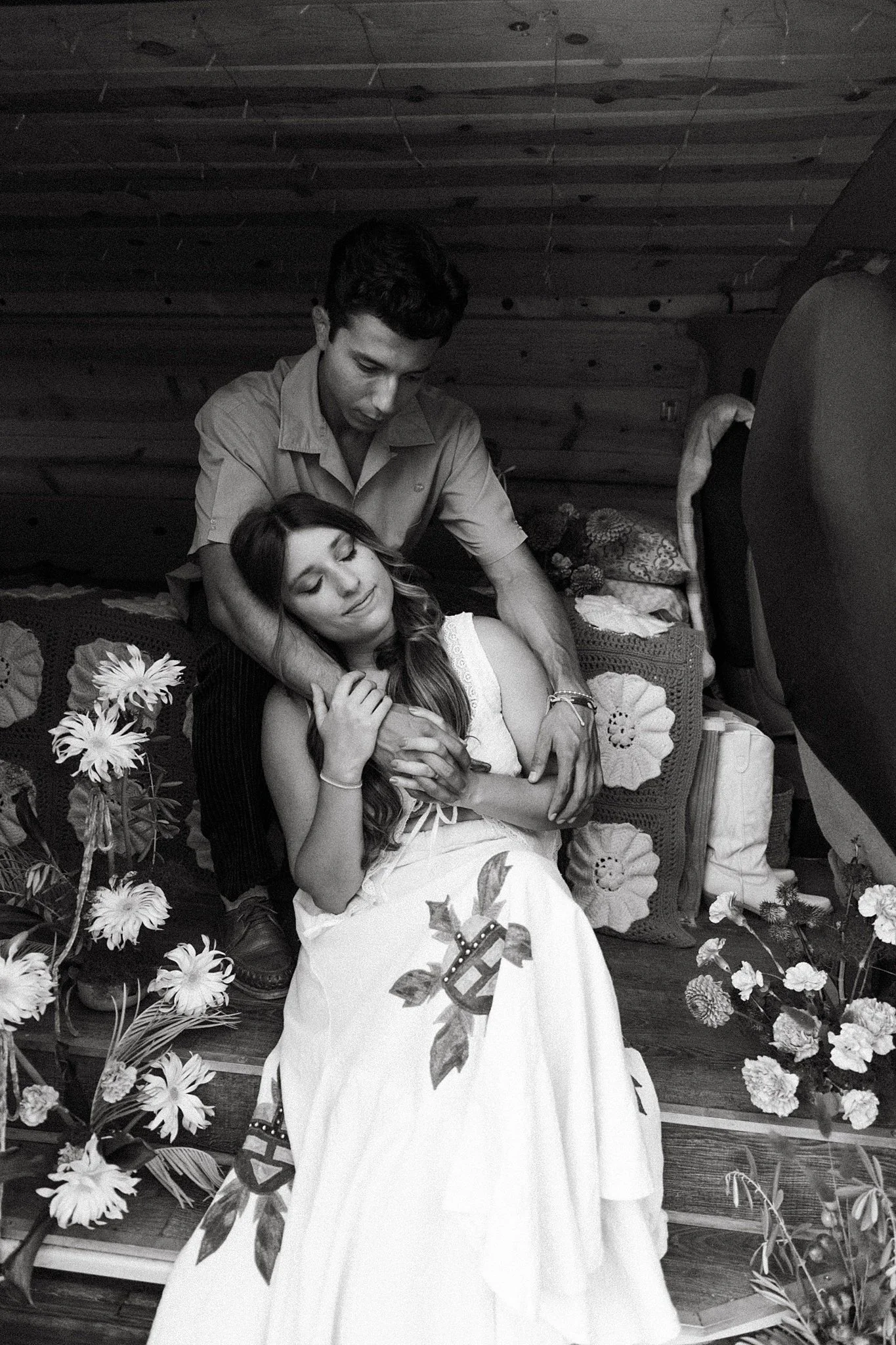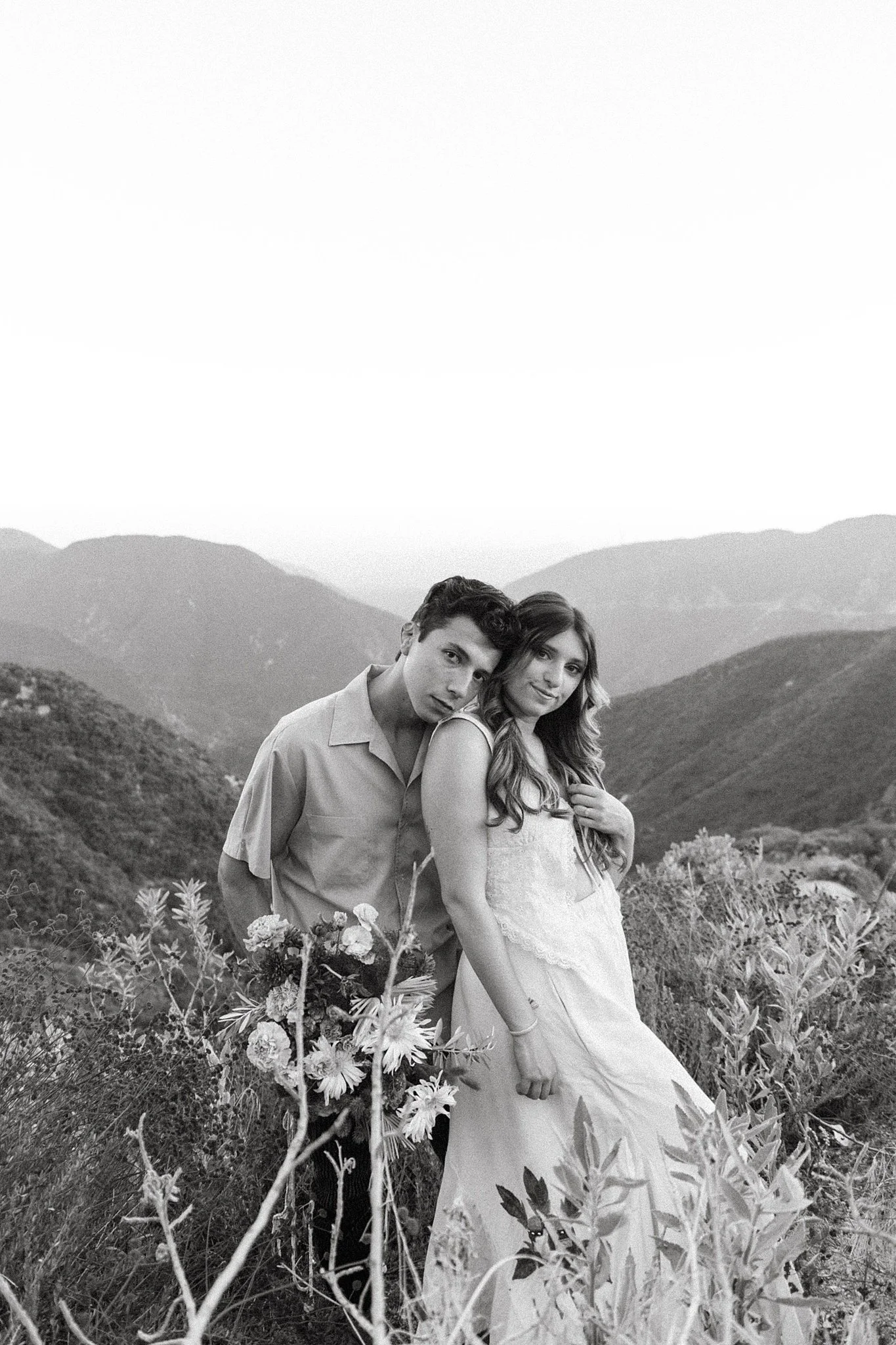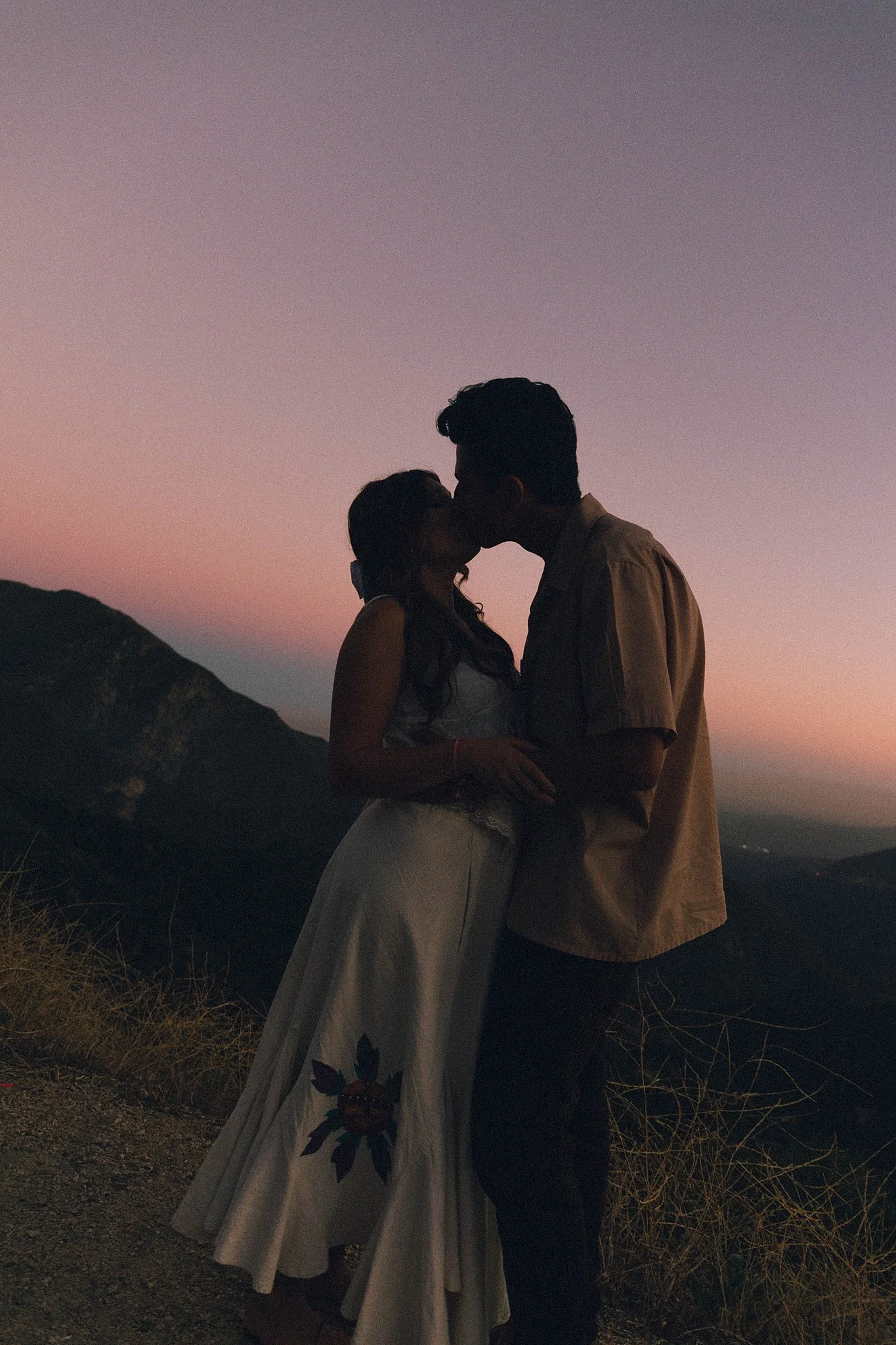 Not only was the view absolutely incredible, but we could see the LA skyline from where we were. There was a perfect little trail we stumbled on and the sun set at just the right time. It was literal magic. But more importantly, this location was special to Marah and Rico. They went spent their first date driving through these mountains in Marahs little rental car and talked for hours, taking in the sites and getting to know each other. Having them share this special spot with us meant so much. And the cherry on top was being able to seamlessly incorporate their van that they travel in and Marah’s incredible floral work. She’s a killer florist and if you’re getting married in SOCAL, you definitely need to check her out.